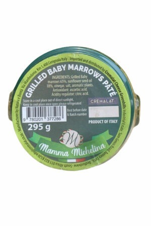 Made from grilled baby marrow, sunflower seed oil, vinegar, a touch of salt and aromatic plants. Mama Michelina is a line created by Cremalat Cheese in honour of Mama Michelina. This brand offers a variety of jarred goods.