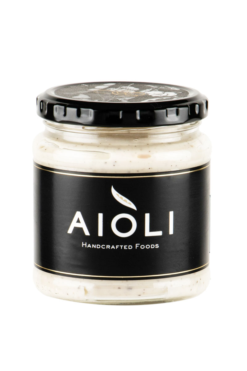 The crème de la crème of our Aioli range; our Truffle Aioli. This luxurious product is made with chopped Italian Black Truffle. The perfect dip to crispy pomme frites, the X-factor to your homemade burger or a royal accompaniment to a fire-roasted steak. You don’t want to miss out on this one!